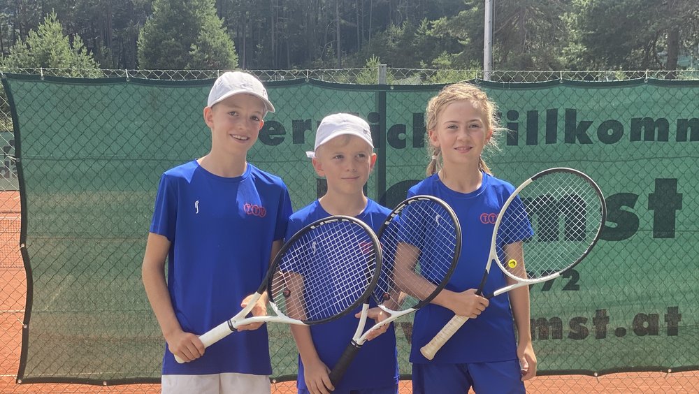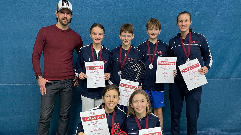 V.l.: Jürgen Melzer, Lilly Mayr, Noah Decristoforo, Elias Greil, Michelle Wechselberger. Vorne v.l.: Marta Decristoforo, Lina Jacob