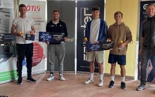 Ein ganz anderes Bild zeigte sich bei den Herren. Hier waren es ausschließlich die vier topgesetzten Spieler, die die Runde der letzten Vier und somit den Titel unter sich ausmachten. Mit dem auf Nummer eins geführten Lenny Hampel und Patrick Ofner, der Nummer zwei des Turniers, standen sich letztlich im Finale auch die absoluten Titelfavoriten gegenüber. Hierbei zeigte Hampel von Beginn an starkes Grundlinientennis und begeisterte mit seiner Power. Kompromisslos gewann der Wiener den ersten Durchgang mit 6:1 und zog auch im zweiten Satz schnell auf 3:0 davon. Dann folgte jedoch die beste Phase von Ofner, der zu Juniorenzeiten zu den besten Spielern der Welt zählte. Mit cleveren Bällen gelangen ihm zwei Games in Folge. Ein umkämpftes Aufschlagspiel Hampels zum 4:2 und das darauffolgende Break war jedoch die endgültige Entscheidung. Hampel, aktuell die Nummer 761 der Welt, gewann letztlich souverän mit 6:1, 6:2 und sorgte damit für einen Wiener Heimsieg. Bereits zuvor war die Doppelkonkurrenz entschieden worden, in der sich das auf Position zwei gesetzte Duo Emil Pristauz und Niklas Rohrer in die Siegerlisten eintragen konnten.
