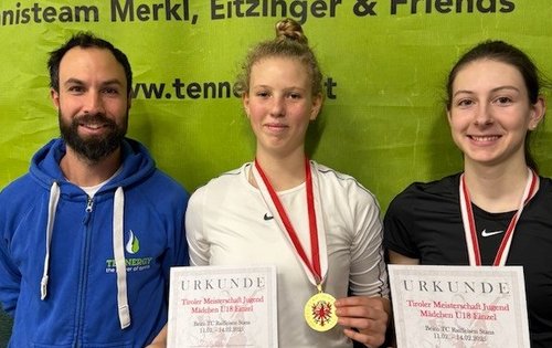 In der U12 gingen die Tiroler Hallenmeistertitel an Lina Jacob (TC Raika Pitztal) und Simon Stütler (TC Götzens), in der U14 an Letizia Kindler (TC Hall-Schönegg) und Elias Greil (TC Sparkasse Kramsach), in der U16 an Marie Schuler (USV Ötz) und Lorenz Stadler (TC Raiffeisen Schwaz) sowie in der U18 an Viktoria Soier (TC Raiffeisen Schwaz) und Paul Roeder (TC Seefeld).