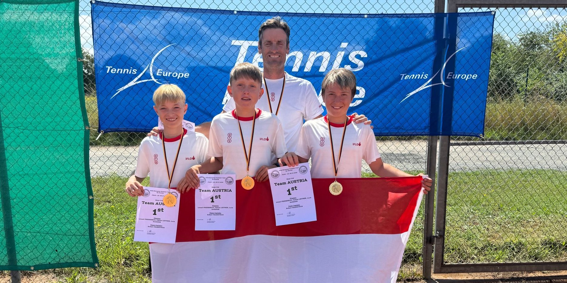 Österreichs Jugend U12 hat letzte Woche bei den traditionsreichen European Summer Cups wieder einmal kräftig aufgezeigt. Ganz besonders die heimischen Burschen: Unter der Anleitung von ÖTV-U12-Nationaltrainer Robert Maieritsch schafften Lionel Frießnegg (STTV), Luca Sageder (OÖTV) und Fabian Leitner (OÖTV) über die Qualifikationsrunde den Sprung zur Finalrunde, die vom 8. bis zum 11. August 2024 in Dijon in Frankreich steigt. Auch die rot-weiß-roten Girls schlugen sich unter Betreuerin Caroline Ilowska exzellent: Marie Schmidhofer (OÖTV), Zoey Zandomeneghi (OÖTV) und Lena de Vries (VTV) wurden überraschenderweise Gruppensiegerinnen, verpassten jedoch durch eine Niederlage in der entscheidenden Play-off-Runde knapp das Finalturnier in Sarrola-Carcopino auf der französischen Mittelmeerinsel Korsika.