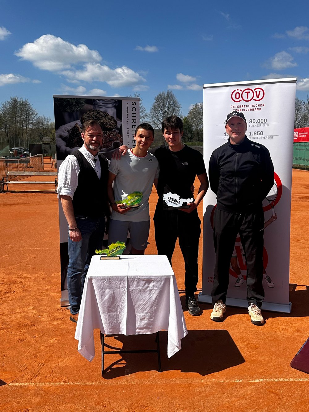 Auch die rot-weiß-roten Burschen präsentierten sich anständig. Mit Leander Tauber (ITF 1147), Benjamin Scharner (ITF 1016) und dem Lokalmatador Timo Rosenkranz-König (ITF 677) schafften es immerhin drei ins Viertelfinale, Tauber es sogar eine Runde weiter. Im Kampf um einen Platz im Endspiel musste sich der Niederösterreicher dem topgesetzten Niederländer Marko Knezevic (ITF 660) mit 2:6, 4:6 geschlagen geben. Dieser feierte mit einem finalen 6:4, 6:1 über den Briten Henry Best (ITF 1369) dann auch den Titelgewinn. Der Doppelsieg ging an die rumänische Paarung Eduard Dragomir und Iancu Manolache. Der Veranstalter des ITF-J30-Sandplatzturniers im Südburgenland, Herbert Rosenkranz, freute sich laut der BTV-Website trotz der Wettereinflüsse über eine gelungene Woche: „In den letzten Jahren hatten wir Schnee, Regen und so weiter. Heuer war der Wind ein großer Spielverderber – richtiges Aprilwetter eben.“ Mit über 900 Anmeldungen erfreute sich das Event einmal mehr regem Zulauf. Knapp über 100 Spieler:innen aus 20 Ländern durften dann wirklich bei den JOKE Systems Open um Punkte kämpfen. Inzwischen läuft am Colony Club Wien bereits das nächste ITF-Jugend-Heimturnier. Dort zeigten diesmal verstärkt die heimischen Burschen auf, die gleich fünf Spieler ins Viertelfinale brachten. Die Veranstaltung wird am Sonntag beendet.