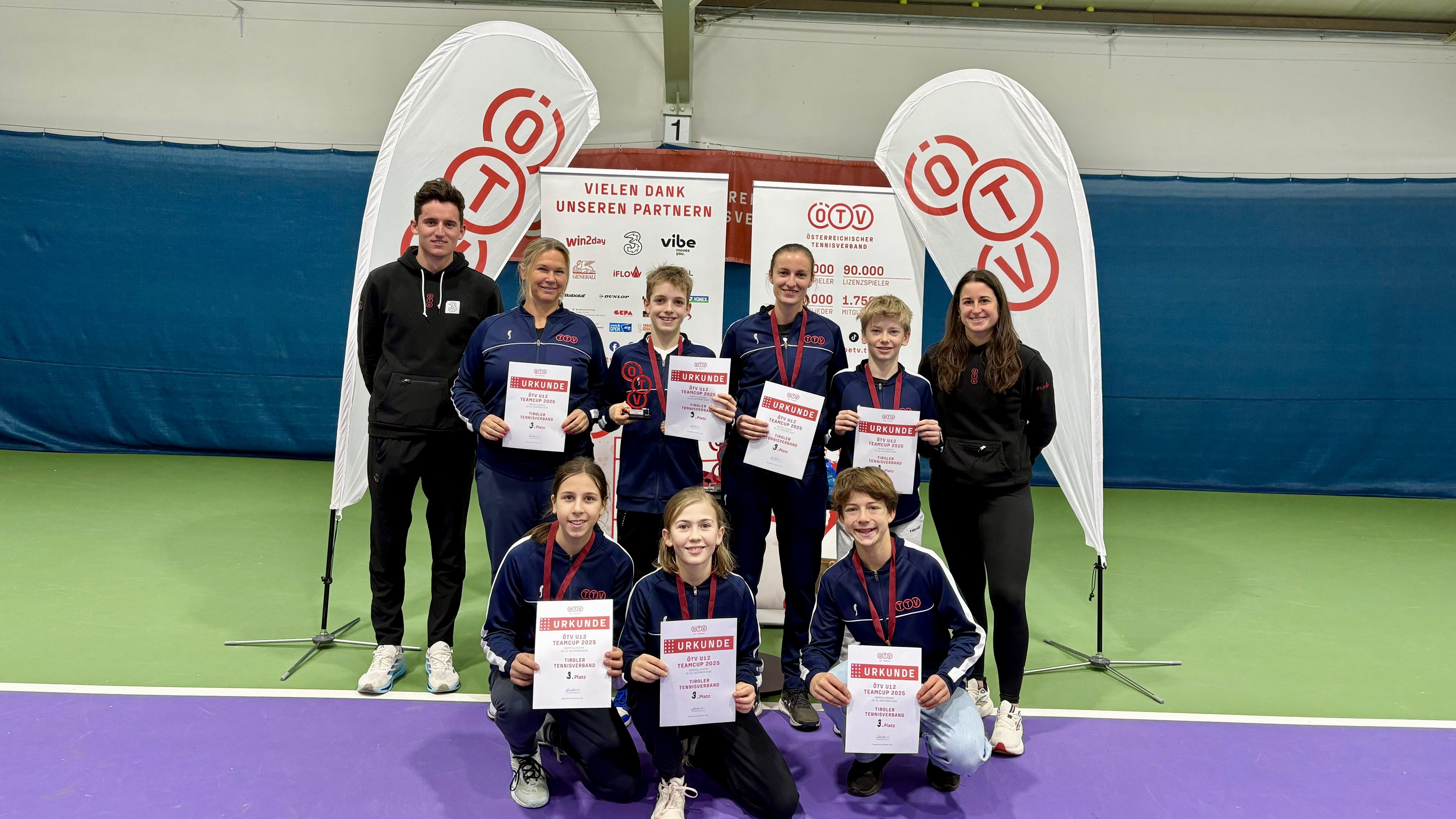 Vom 18. bis 21. Dezember 2025 fand in Oberpullendorf der ÖTV Team Cup U12 statt – ein echtes Highlight für die besten Nachwuchsspieler:innen Österreichs. Das Tiroler Team bestand aus Marta Decristoforo, Lina Jacob, Max Wille, Simon Stütler und Maximilian Holz, betreut wurden unsere Tennisasse von den TTV-Coaches Petra Russegger und Michelle Wechselberger.